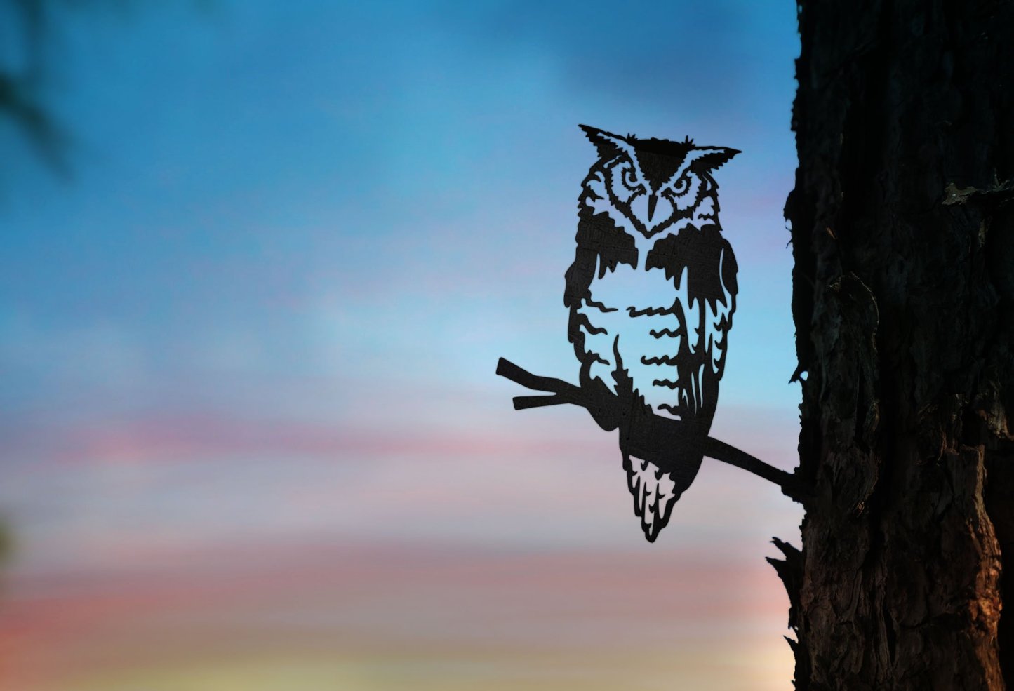 The Owl metal tree art silhouette is a beautiful, well-made addition to your backyard. Shop now this outdoor garden decor sculpture bird silhouette. Limited stock, all our metal art silhouettes sell out quickly.